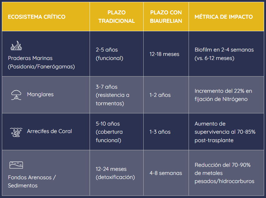 | Ecosistema Crítico | Plazo Tradicional | Plazo con BIAURELIAN | Métrica de Impacto |